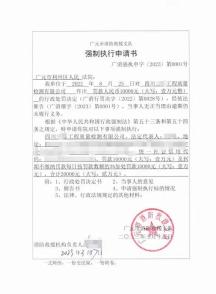 2023年2月21日,因四川某检测公司签收《行政处罚决定书》六个月内未缴纳罚款,支队对该公司进行书面催告,限其10日内缴纳罚款2万元(含行政处罚滞纳金1万元)。在催告无效的情况下,支队3月17日向广元市利州区人民法院申请强制执行。经审查,法院于5月25日裁定准予强制执行,7月2日下发《执行通知书》和《财产报告令》,并对该公司名下的不动产、证券、税务、保险、网络资金、银行存款进行了查询登记,8月17日罚款执行完毕并结案。